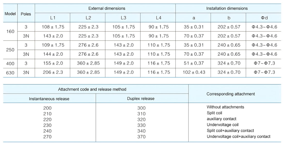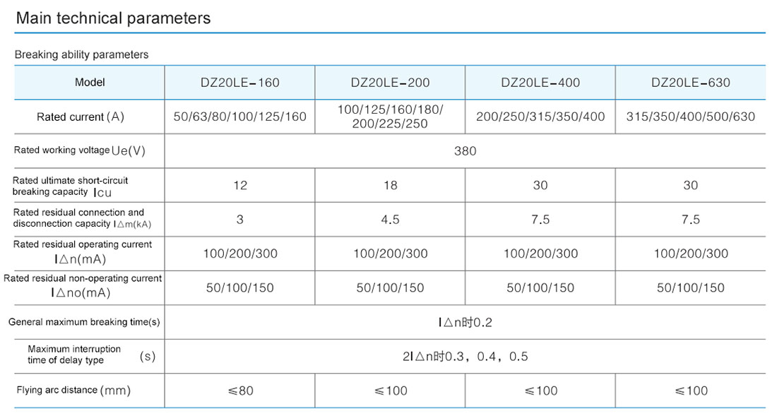 ♦ Adatto per circuiti di rete di distribuzione con AC 50Hz, tensione di lavoro classificata di 380 V, corrente nominale di 630A e inferiore;
