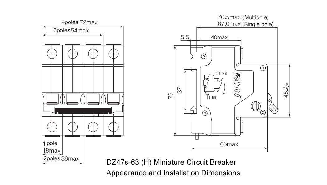 L'interruttore in miniatura della serie DZ47S-63 (H) è progettato per proteggere da sovraccarichi e cortometraggi in sistemi elettrici con una frequenza CA di 50Hz, una valutazione massima di tensione di 230/400 V e una valutazione di corrente fino a 100A. Inoltre, può essere utilizzato per la commutazione occasionale di linee e attrezzature in normali condizioni operative. Questo prodotto è conforme ai seguenti standard: IEC60898-1 、 GB10963.1